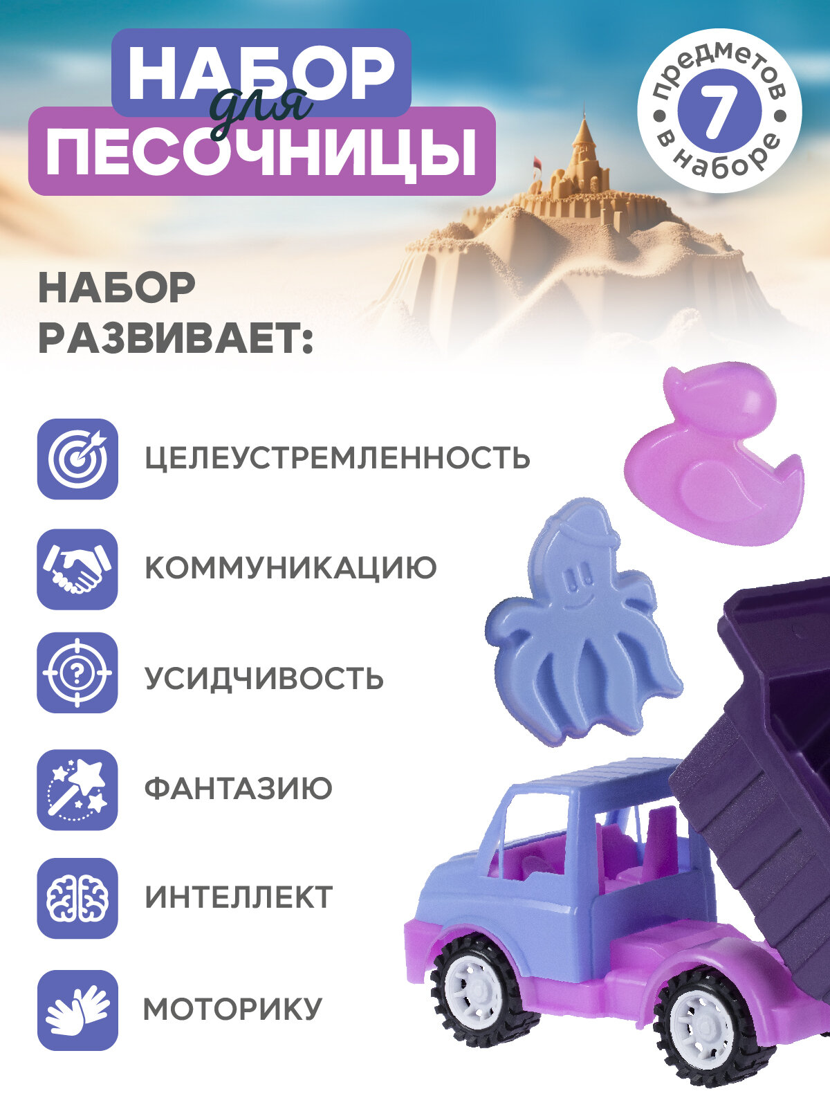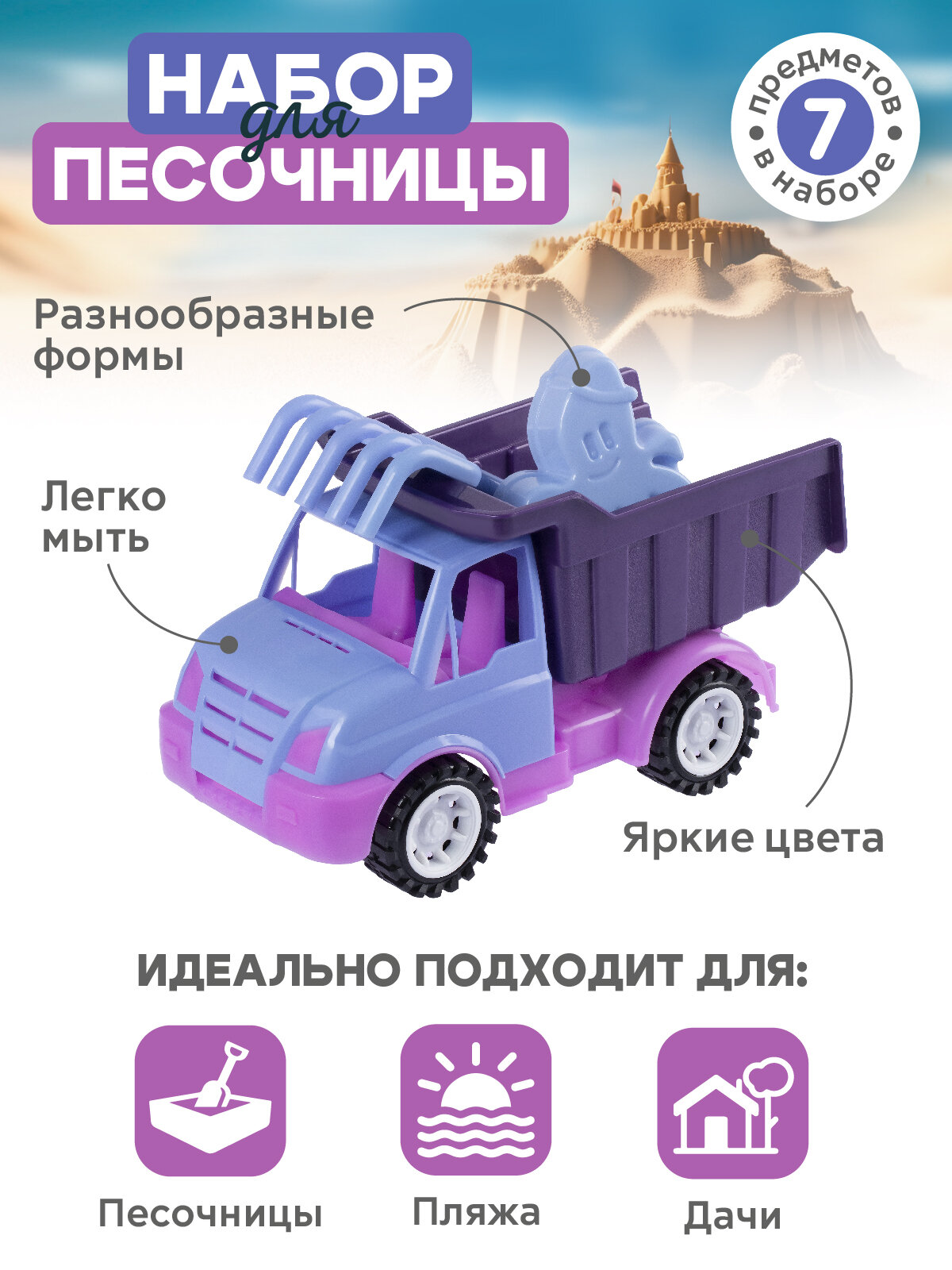 Купить Набор для игры в песочнице с грузовиком, грабельки/лопатка, формочки для песка, JB5300562