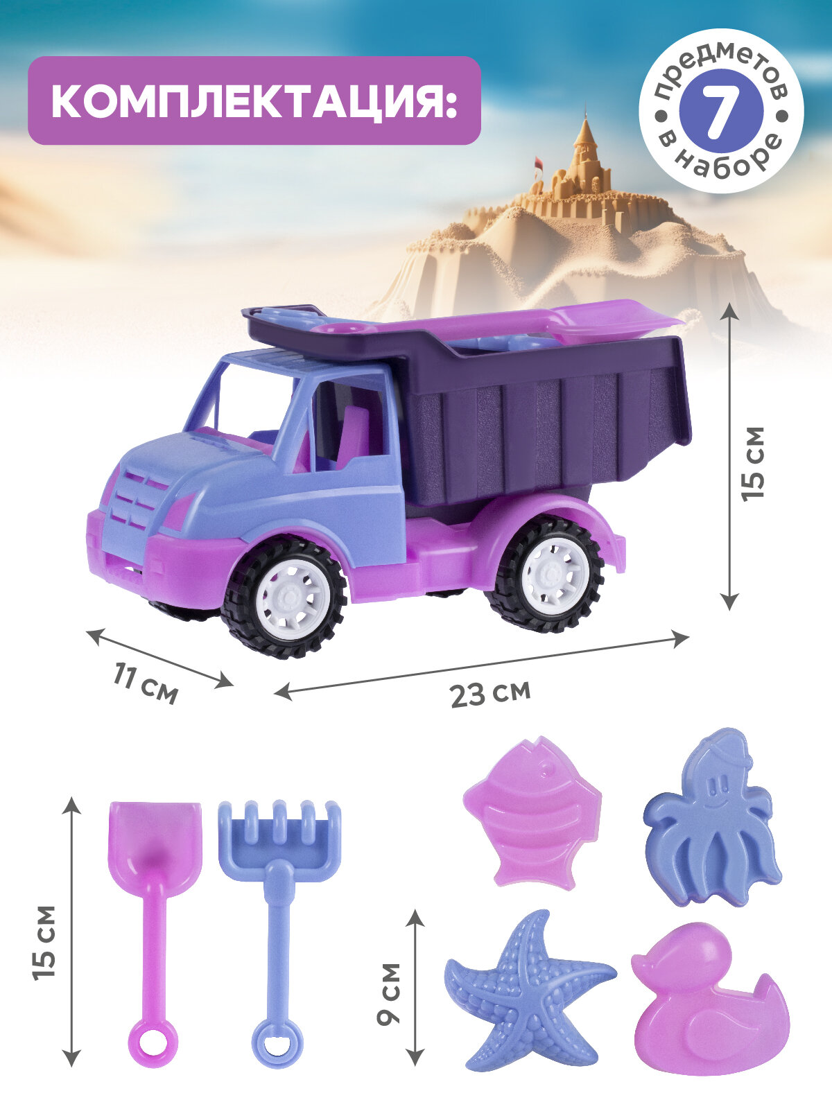 Набор для игры в песочнице Машинка грузовик, грабельки/лопатка, формочки для песка, JB5300564