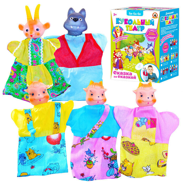 | Комплектация | 3 куклы козленка, 1 кукла мамы-козы, 1 кукла волка |