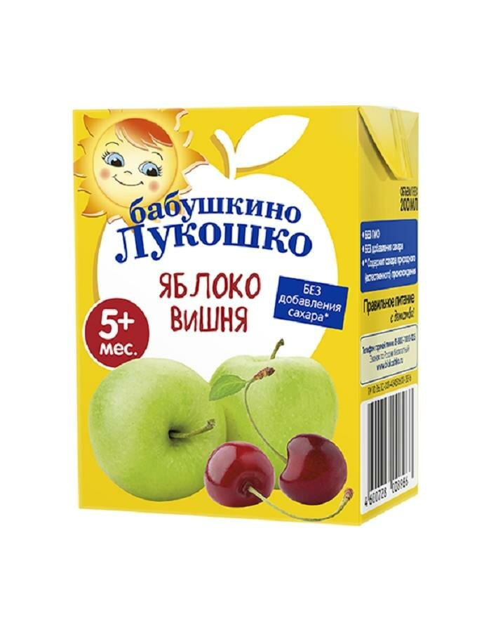 Сок осветленный Бабушкино Лукошко Яблоко-вишня (Tetra Pak), с 5 месяцев, 0.2 л интересное: