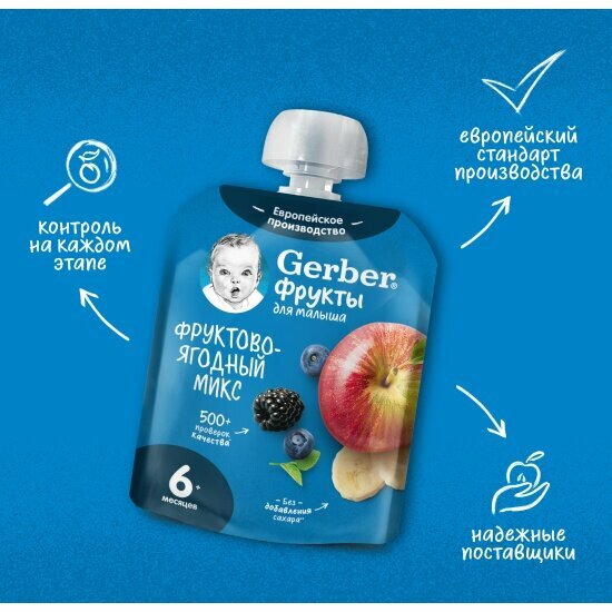 Пюре фруктовое Gerber Фруктово-ягодный микс с 6 мес 90 г пауч (7 штук в упаковке) интересное: