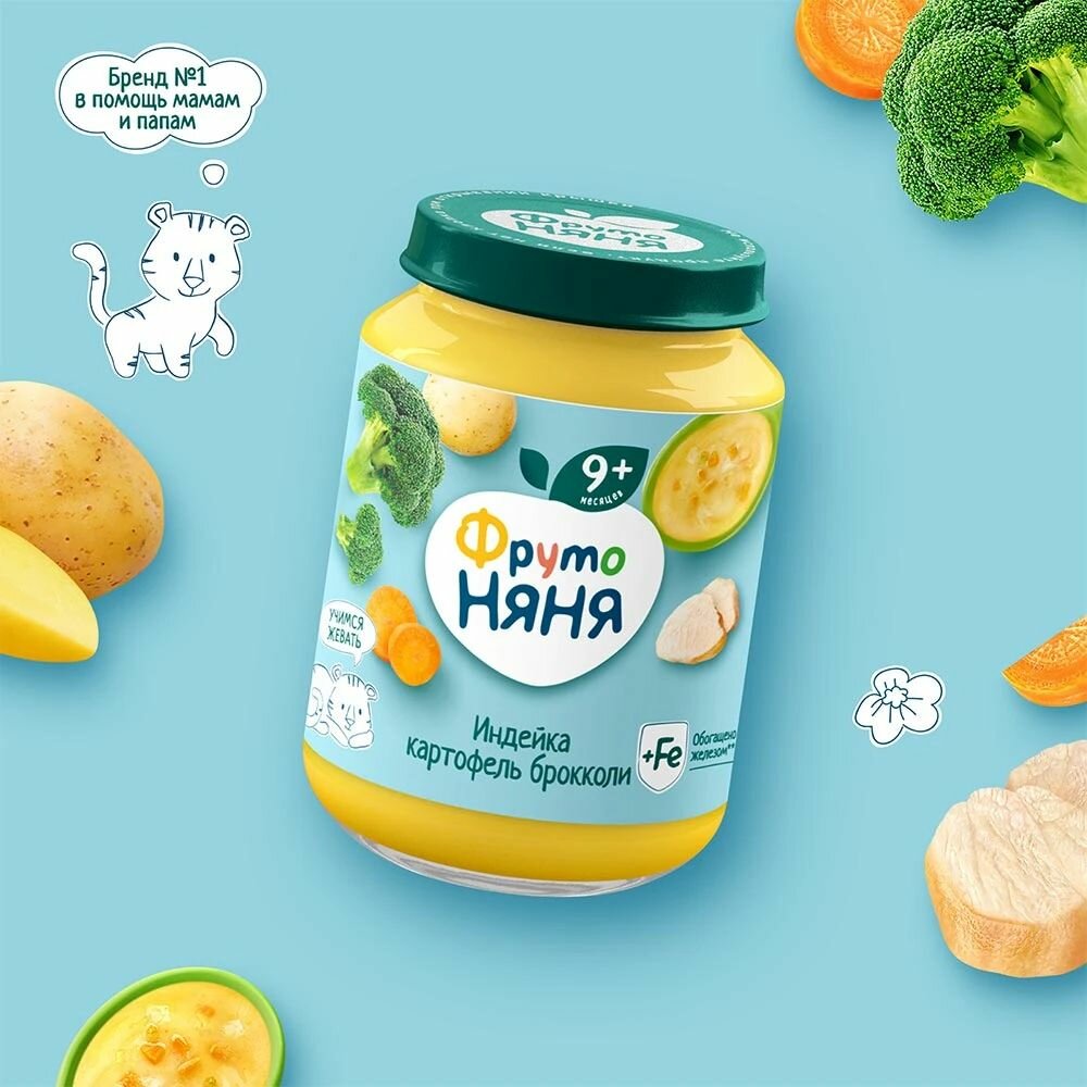 Пюре Фрутоняня индейка картофель брокколи с 9 мес 190 г (6 шт в упаковке)