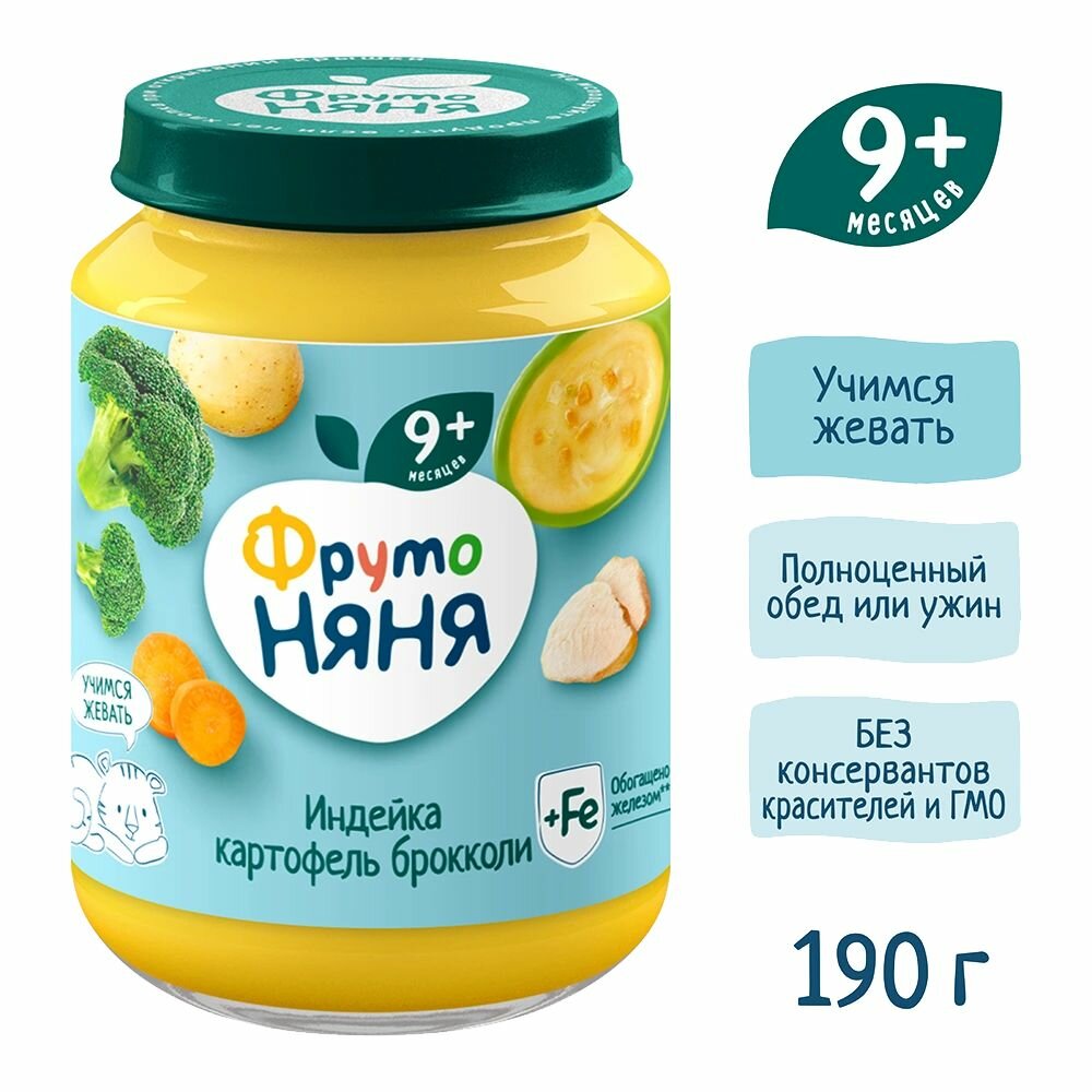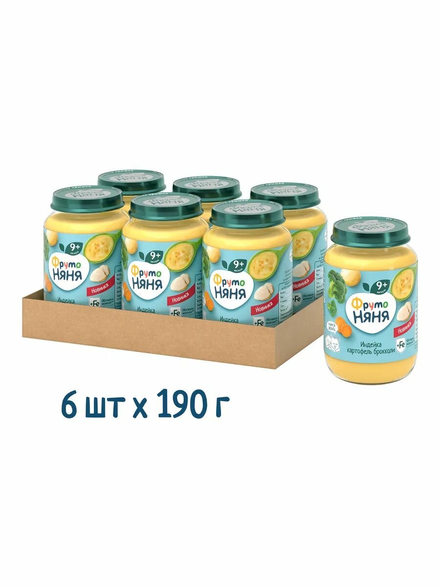 Пюре ФрутоНяня индейка-картофель-брокколи 190г с 9месяцев, 6 шт