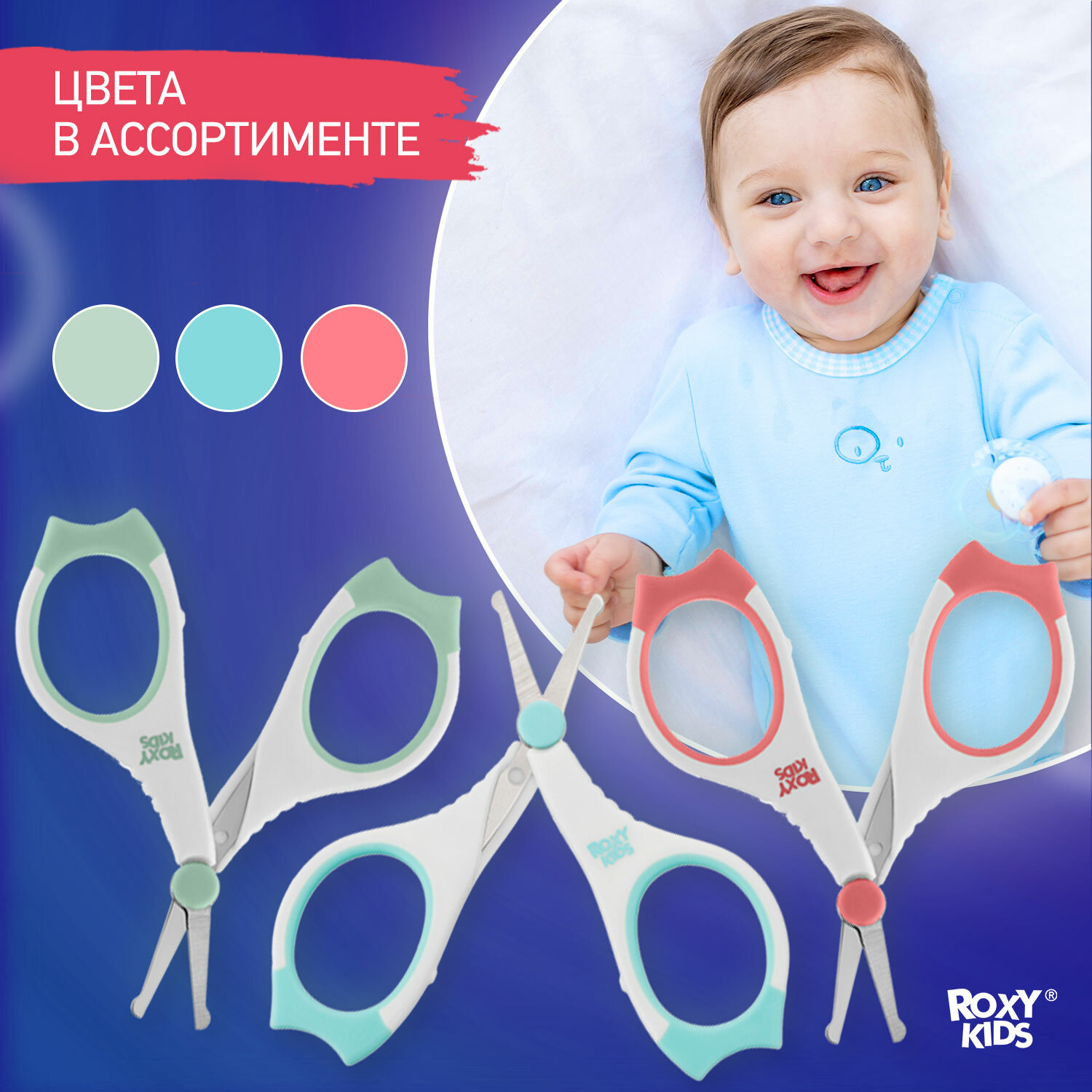 Маникюрные ножницы для младенцев ROXY-KIDS, с колпачком, нержавеющая сталь, мятные