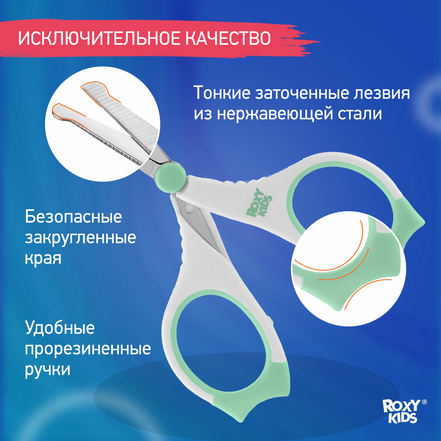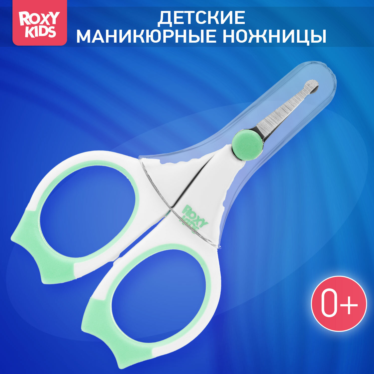 Купить Маникюрные ножницы для младенцев ROXY-KIDS, с колпачком, нержавеющая сталь, мятные