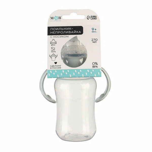 Купить Поильник - непроливайка детский с мягким носиком M&B, 270 мл, с ручками, серый