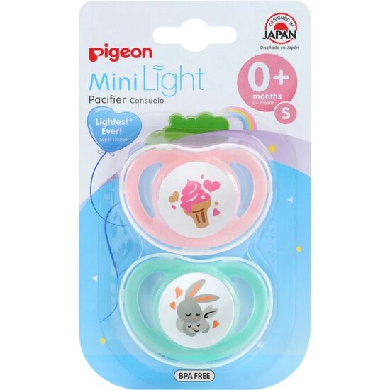 Пустышки Pigeon MiniLight "Мороженое Зайчики" от 0 месяцев, размер S, 2 шт (78247)