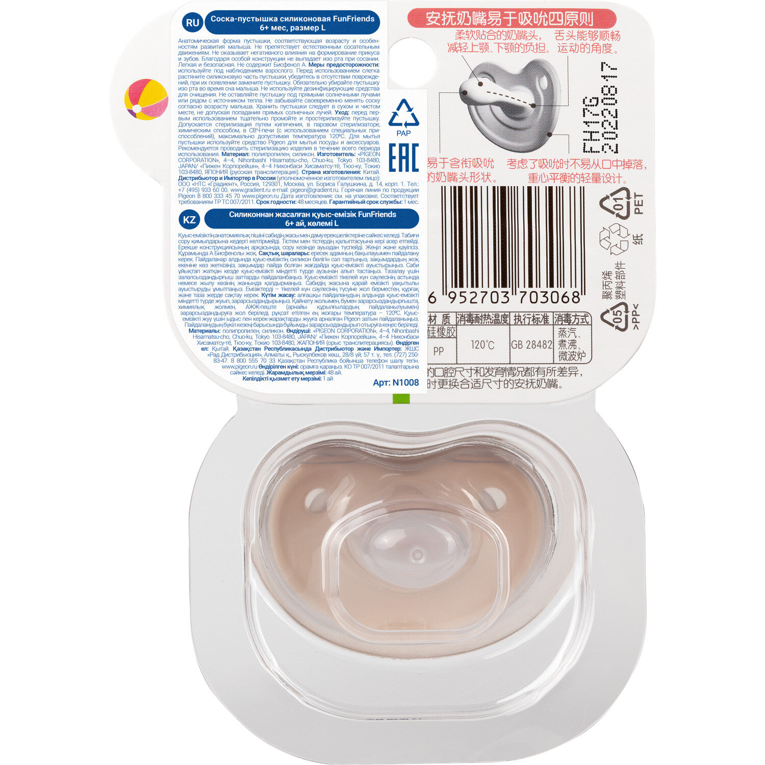 СохранитьPIGEON Пустышка FunFriends Ежик от 6 мес (размер L) интересное: