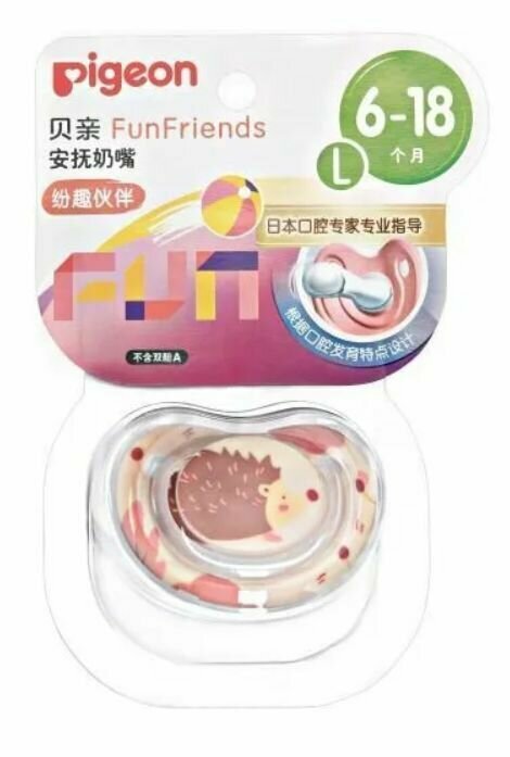 Pigeon Пустышка FunFriends Ежик силиконовая 6+ мес р L 1 шт