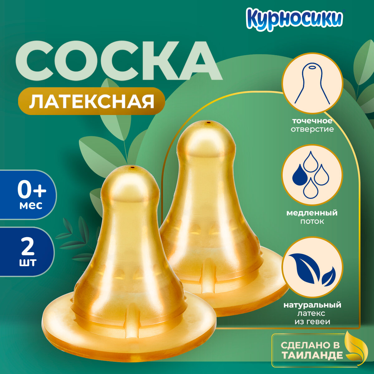 Соска латексная Курносики стандартного размера, медленный поток, 0+ мес./ 2шт/