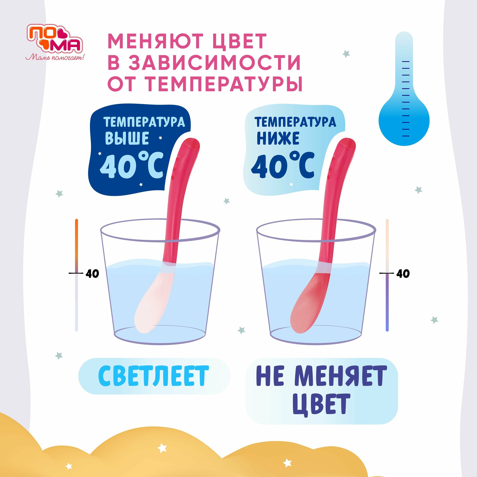 Набор ложек и вилок для прикорма ПОМА, термочувствительные, пластик, от 6 месяцев