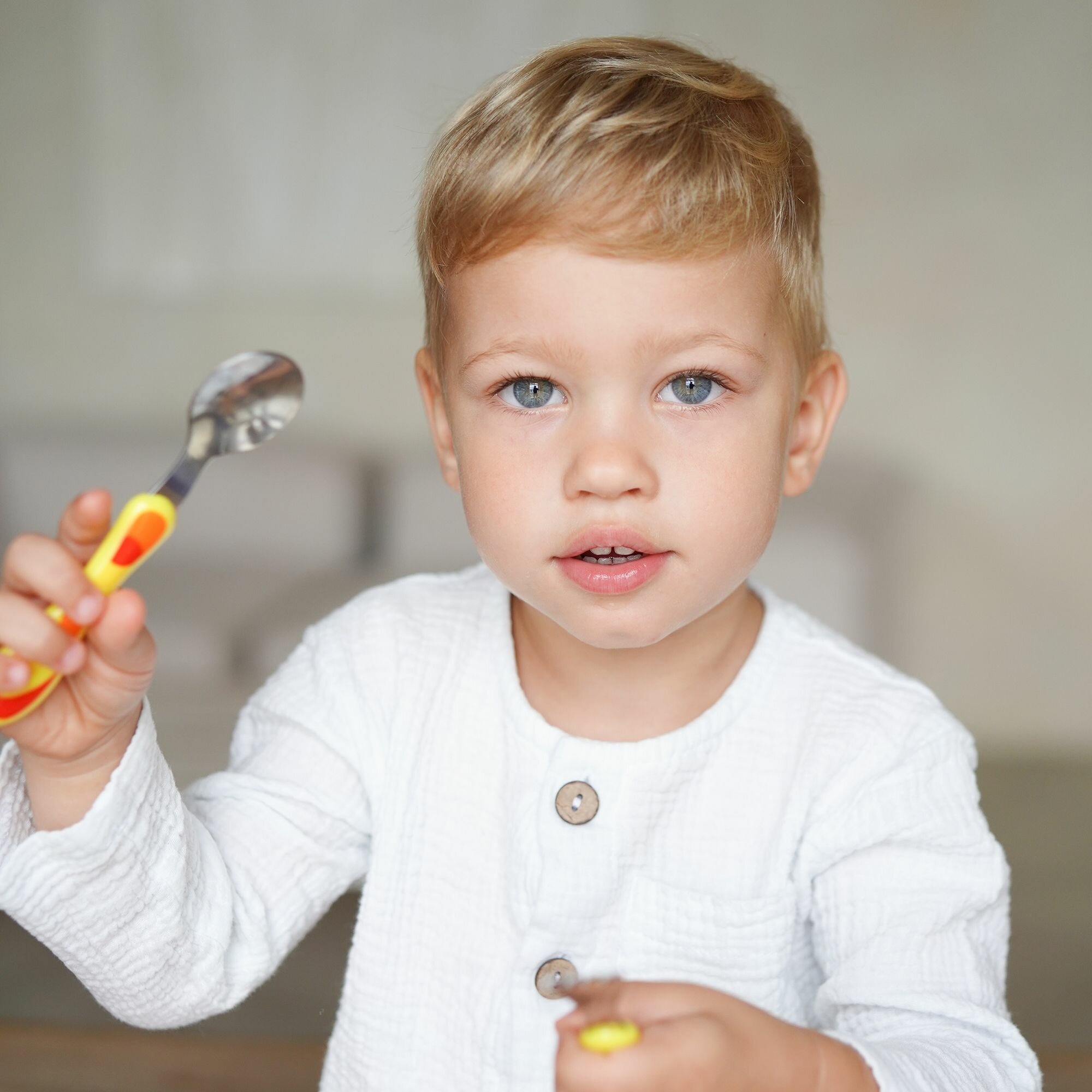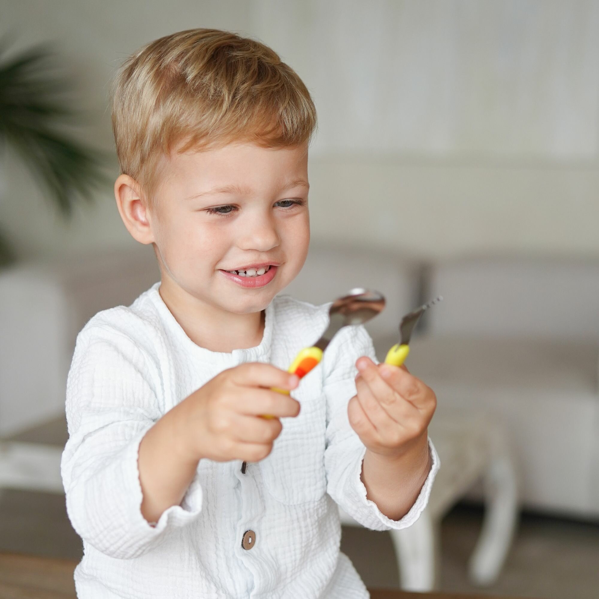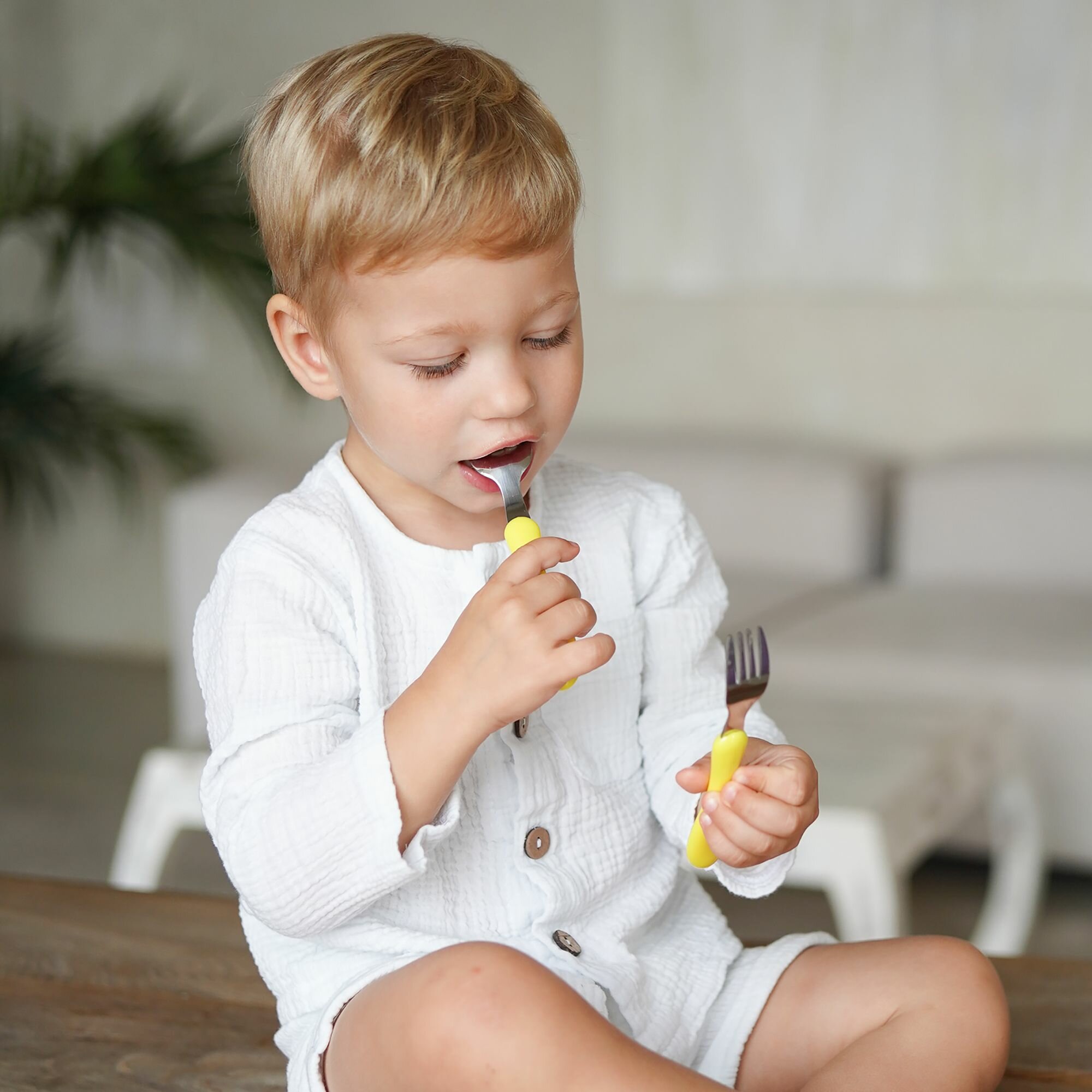 Столовые приборы YummyMia для детей, ложка и вилка для кормления развивающие моторику малышей
