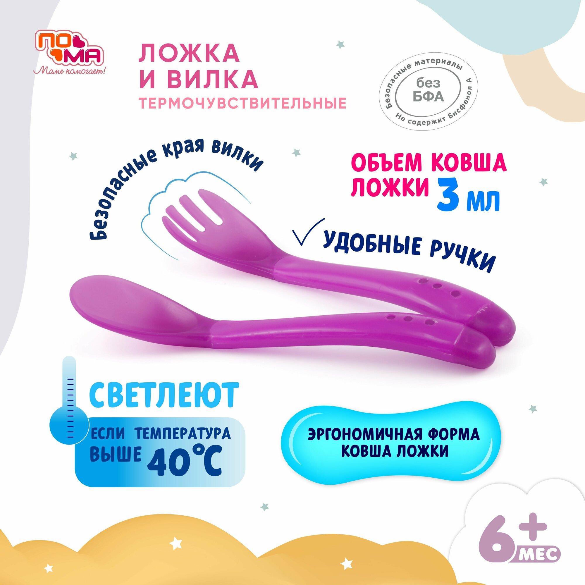 Набор ложек и вилок для прикорма ПОМА, термочувствительные, пластик, от 6 месяцев интересное: