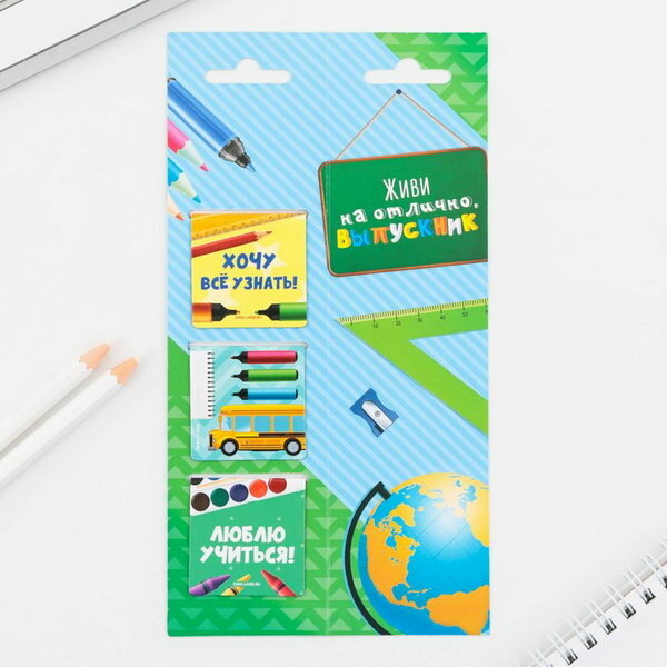 Закладки магнитные на подложке для книг на выпускной «Весь мир в твоих руках» 3 штуки