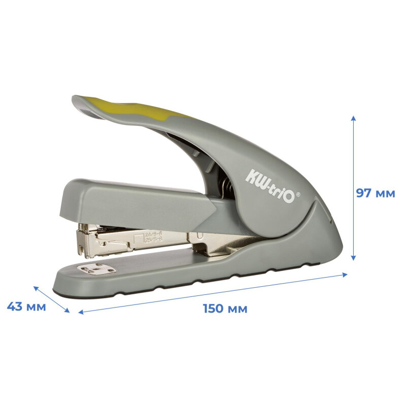 Степлер настольный Kw-Trio 5618GR/GREEN Soft-Touch 24/6 24/8 26/6 26/8 (40листов) снижение усилия серый/зеленый 100скоб