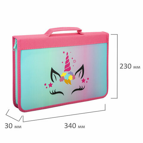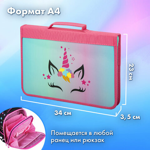 Папка на молнии с ручками Brauberg А4, с органайзером, 1 отделение, "Unicorn"