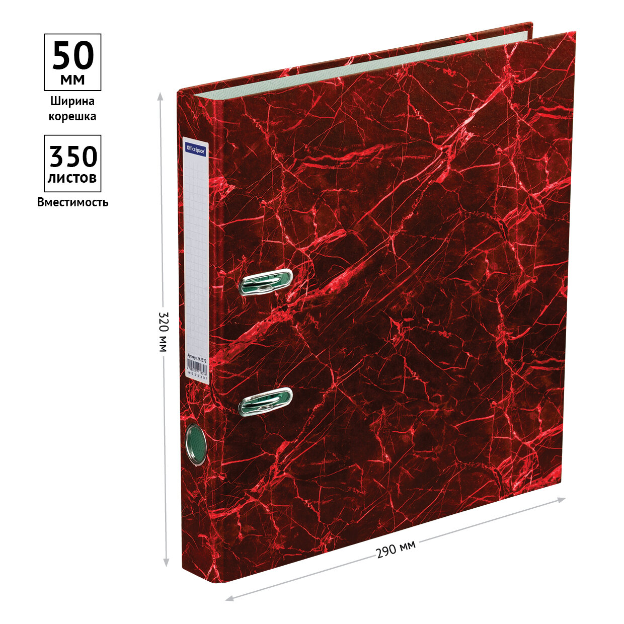 Папка-регистратор OfficeSpace 50мм, мрамор, красная (3 шт)