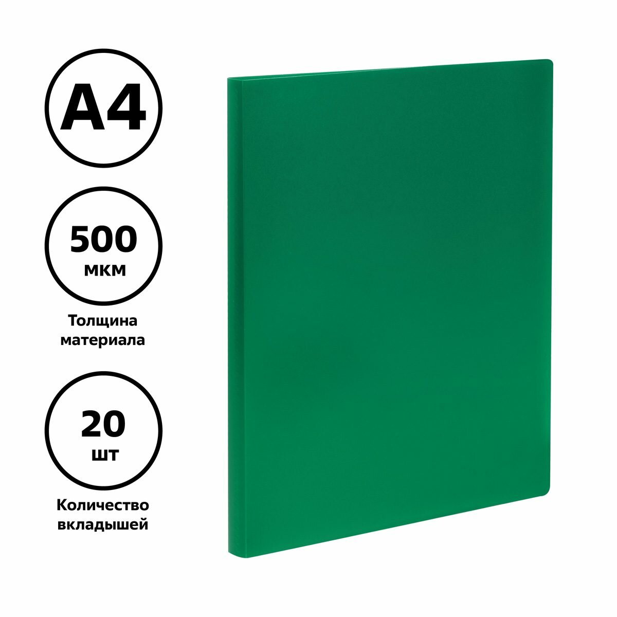 Папка с 20 вкладышами СТАММ А4, 14мм, 500мкм, пластик, зеленая (1 шт)