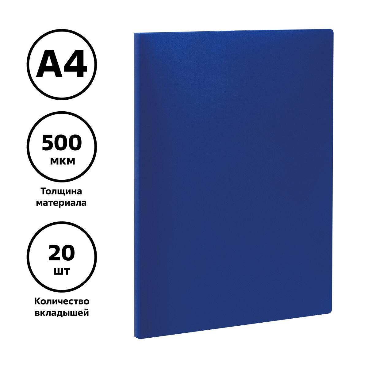 Папка с 20 вкладышами СТАММ А4, 14мм, 500мкм, пластик, синяя (1 шт)