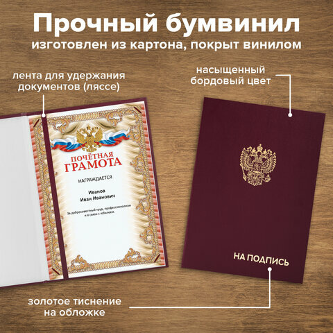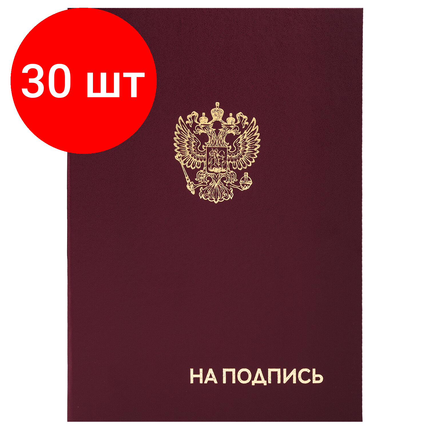 Комплект 30 шт, Папка адресная бумвинил "на подпись" с гербом России, А4, бордовая, индивидуальная упаковка, STAFF "Basic", 129626 интересное:
