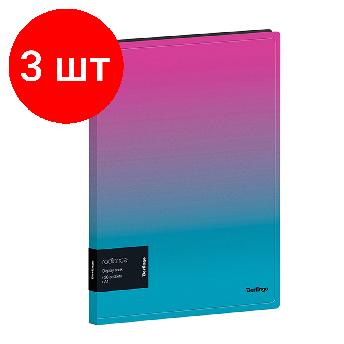 Купить Комплект 3 шт, Папка с 30 вкладышами Berlingo "Radiance" А4, 17мм, 600мкм, с внутр. карманом, розовый/голубой градиент
