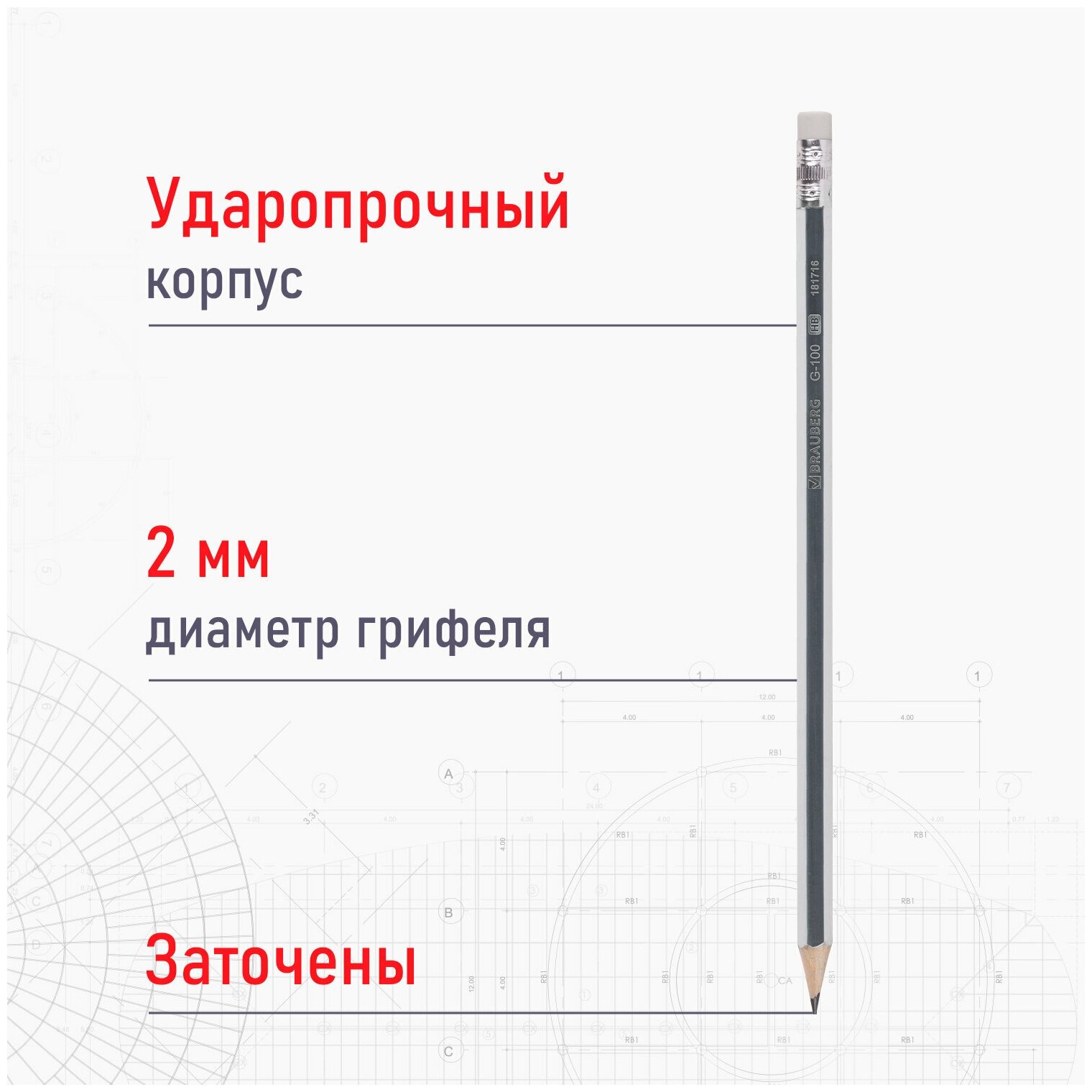 Карандаши простые чернографитные Brauberg G-100 12 шт, HB, с ластиком, корпус ассорти, 181716 интересное: