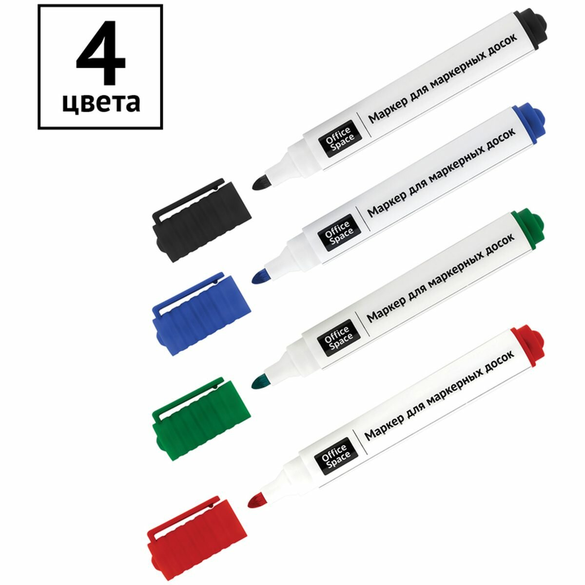 Набор маркеров для белых досок OfficeSpace 4цв, пулевидный, 3мм