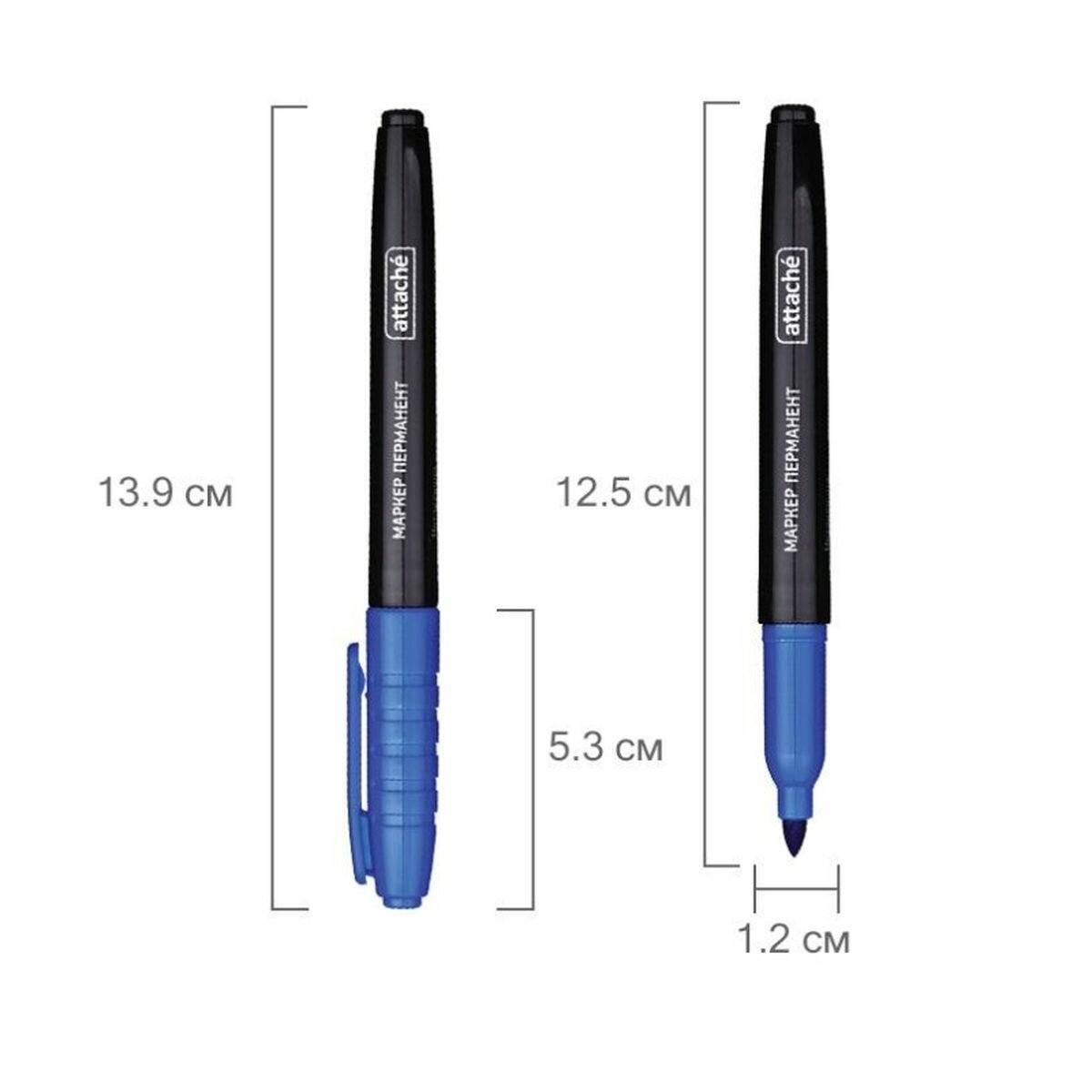 Купить Маркер перманентный Attache (1.5-3мм, круглый наконечник, синий), 12шт.