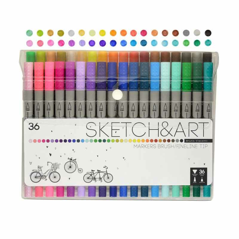 Набор двусторонних скетч-маркеров Bruno Visconti "SKETCH&ART" (Кисточка + Линер) 12 цветов