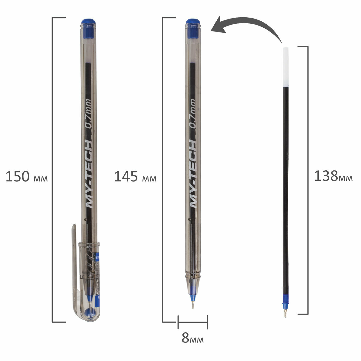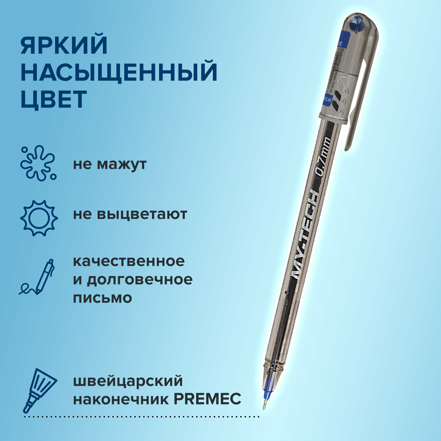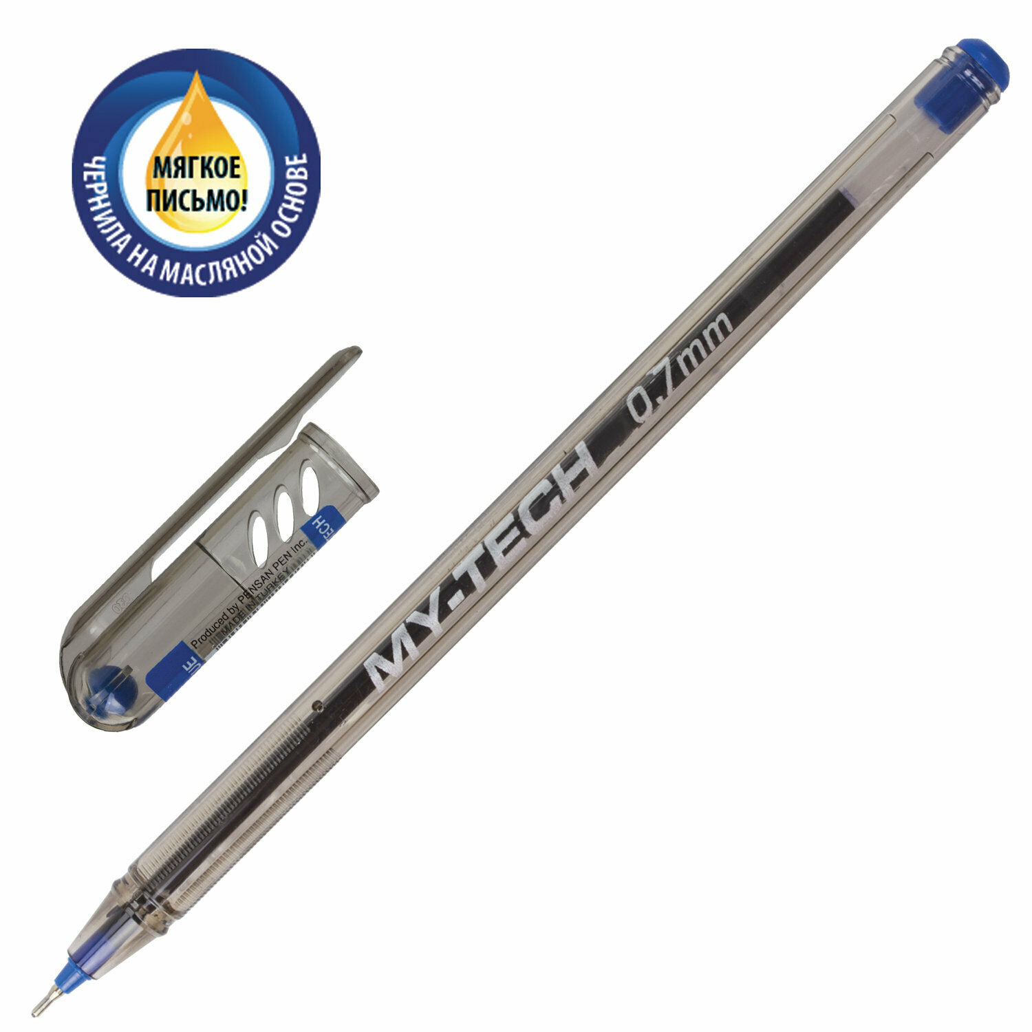 Ручка шариковая масляная Pensan My-Tech, узел-игла 0.7 мм, чернила чёрные