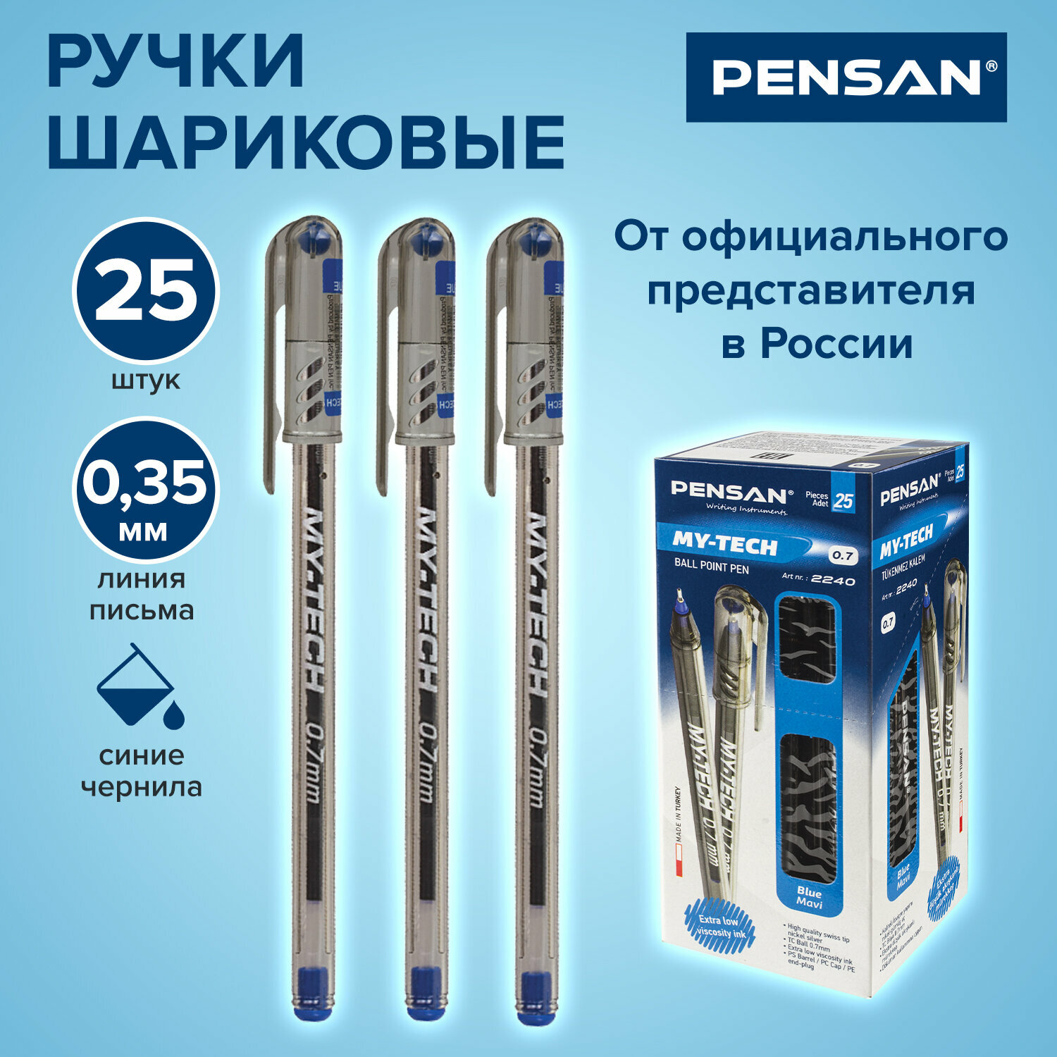 СохранитьРучка шариковая PENSAN My-Tech, синяя, выгодная упаковка, комплект 25 штук, линия 0,35 мм, 880173 интересное: