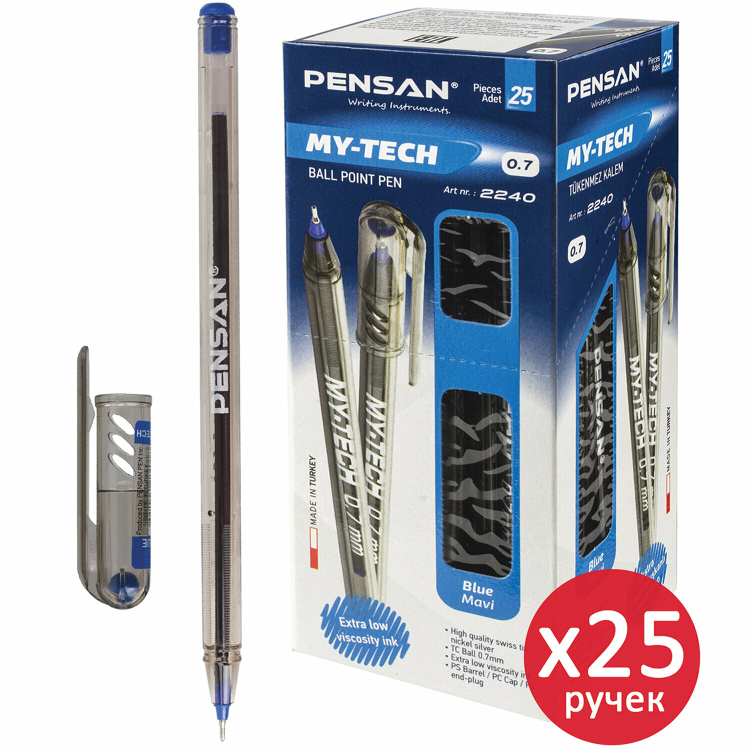 Ручка шариковая PENSAN My-Tech, синяя, выгодная упаковка, комплект 25 штук, линия 0,35мм, 880173
