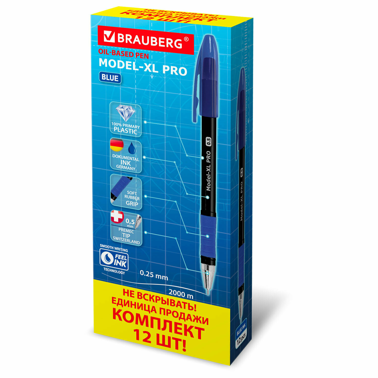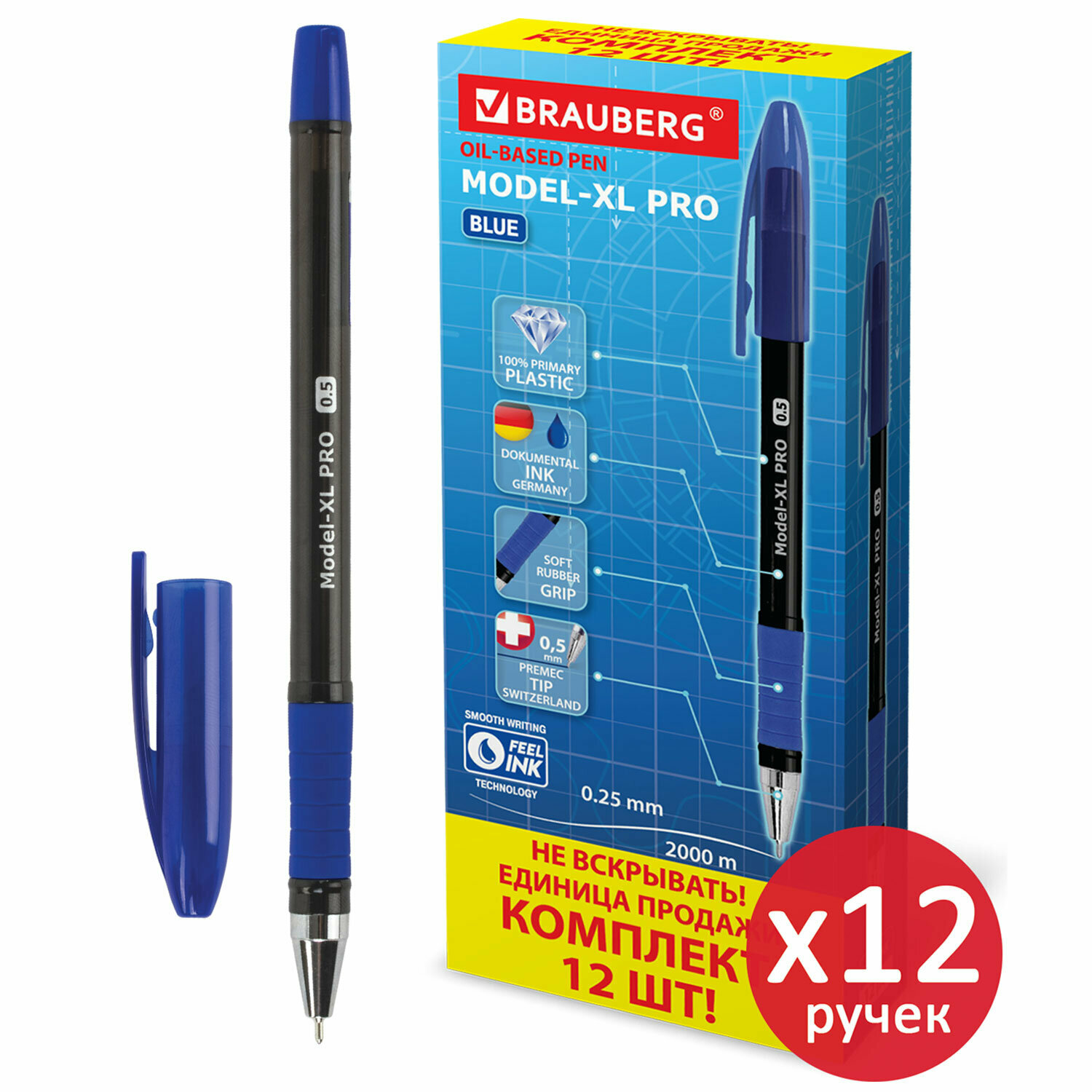 Ручка шариковая масляная с грипом BRAUBERG Model-XL PRO, комплект 12 штук, 880182
