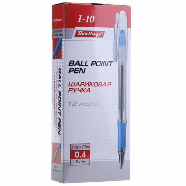 Ручка шариковая Berlingo "I-10" синяя, 0,4мм, грип, 12 штук