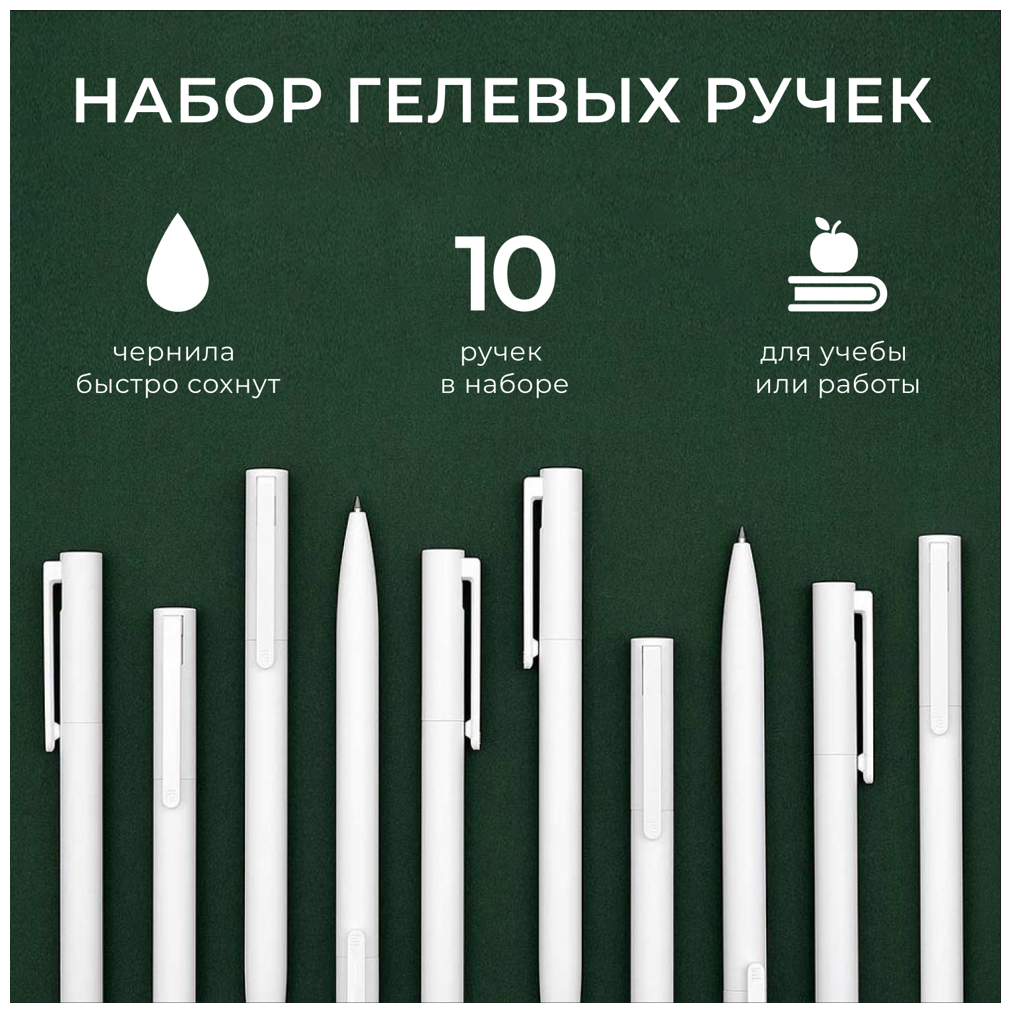 Купить Xiaomi Набор гелевых ручек Mi Gel Pen, MJZXB01WC, черный цвет чернил, 10 шт, для ЕГЭ