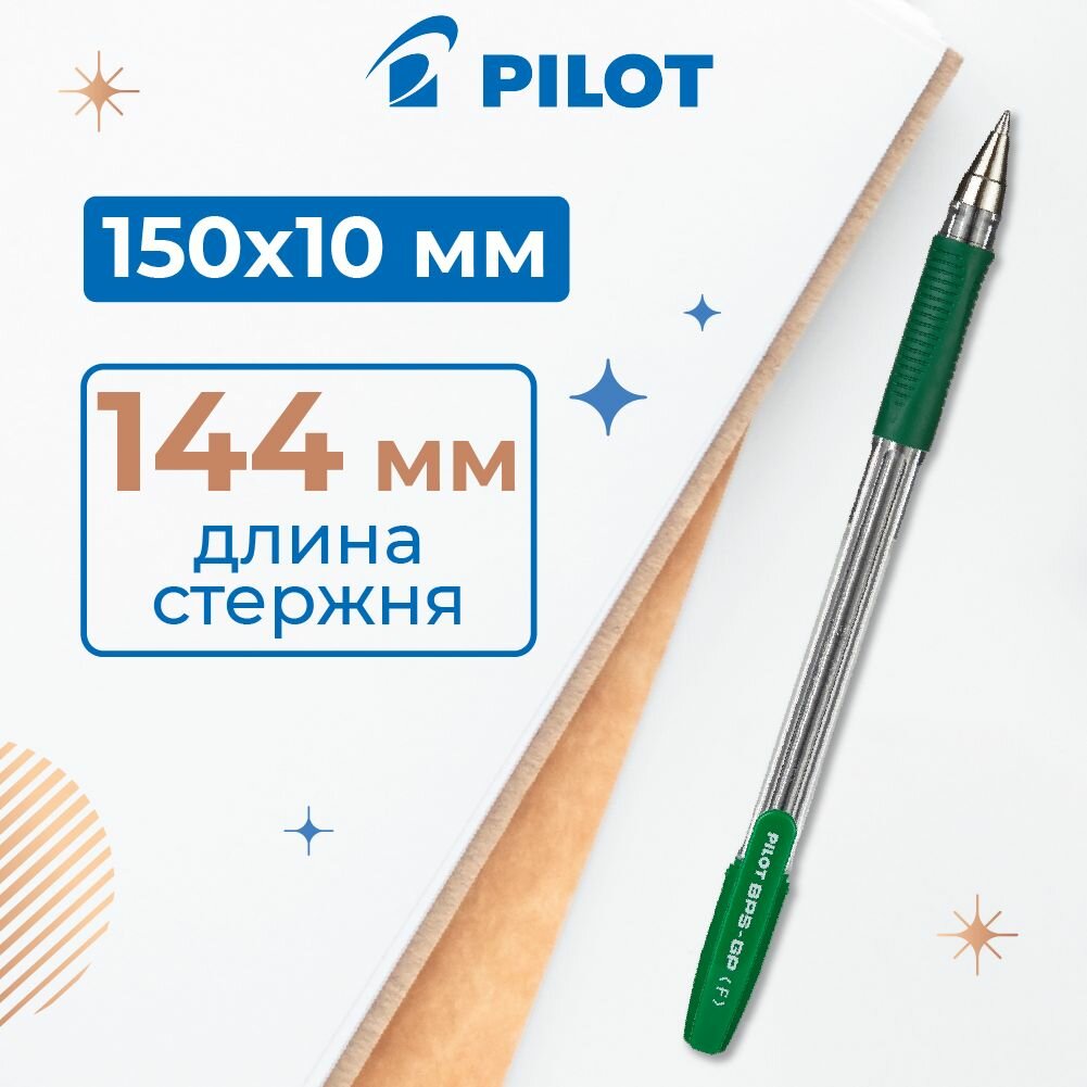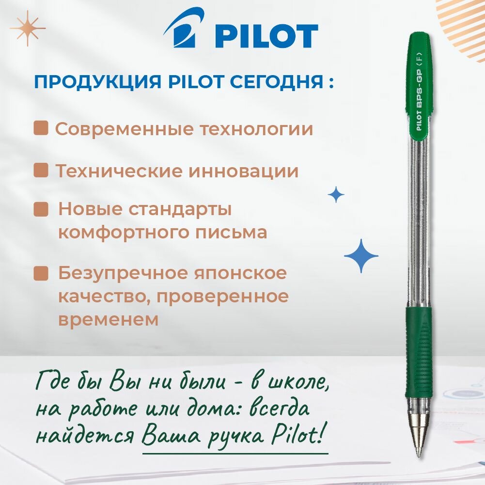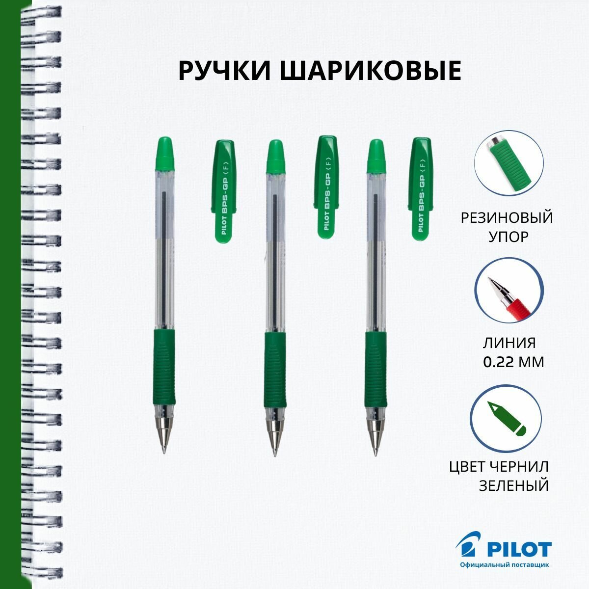 Купить Ручки шариковые зеленые Pilot, масляные чернила, линия письма 0,22 мм, набор 3 шт