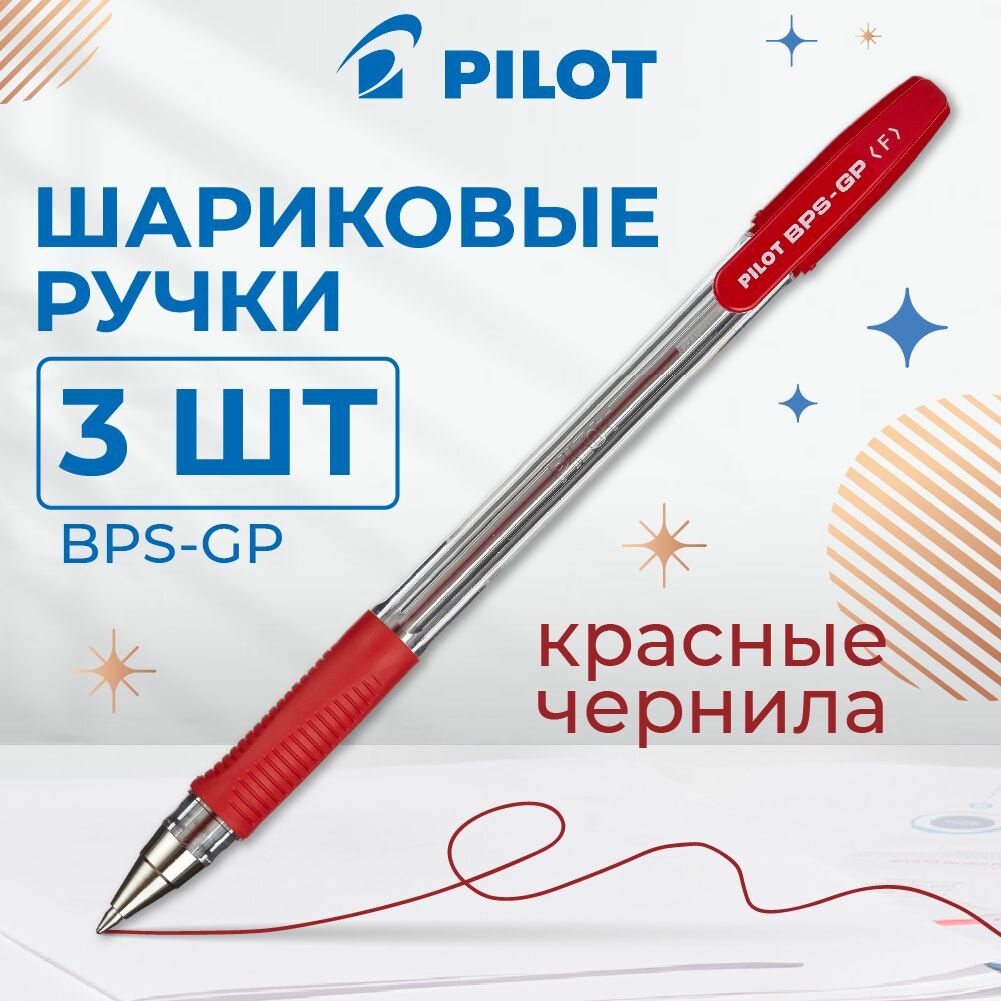 Купить Ручка шариковая красная Pilot, масляные чернила, линия письма 0,22 мм, набор 3 шт