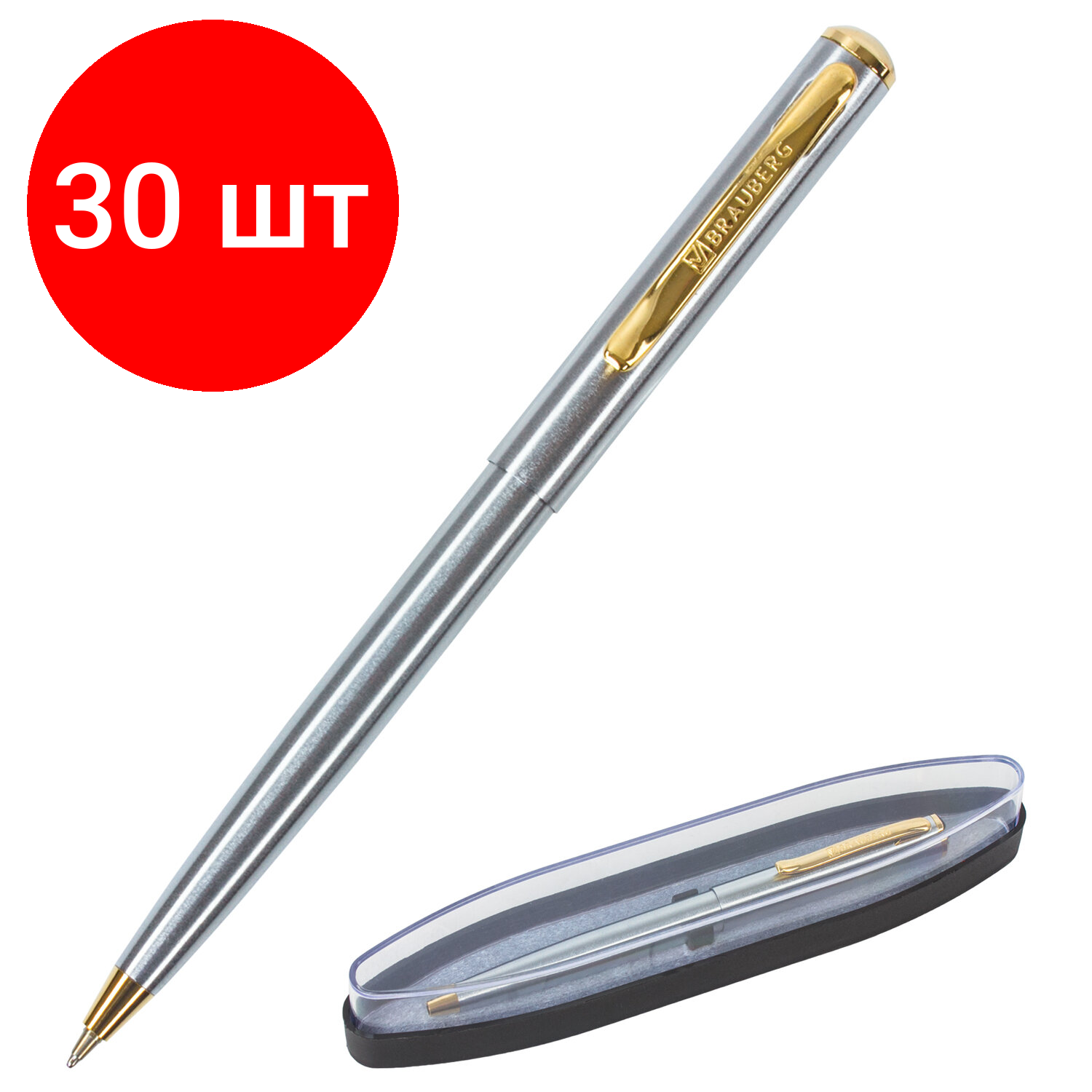 СохранитьКомплект 30 шт, Ручка подарочная шариковая BRAUBERG Maestro, синяя, корпус серебристый с золотистым, линия письма 0.5 мм, 143468 интересное: