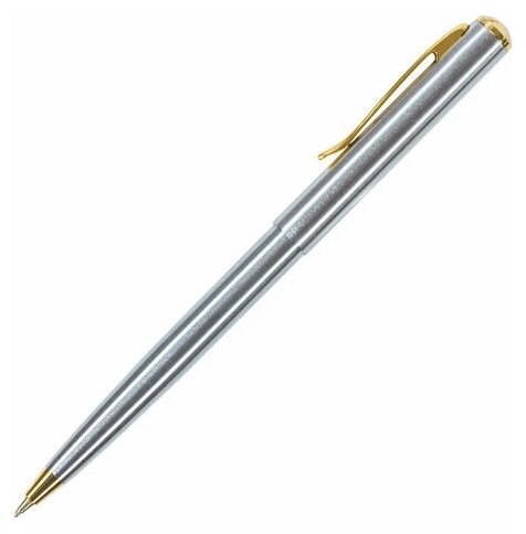 Ручка шариковая подарочная мужчине и женщине Brauberg Piano, Синяя, корпус серебристый с золотистым, линия письма 0,5 мм, 143472