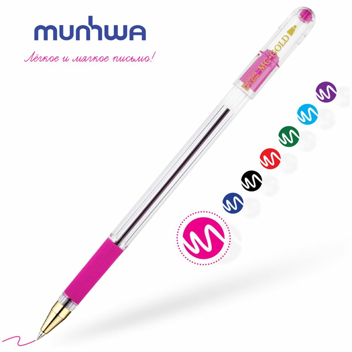 Ручка шариковая MunHwa MC Gold (0.3мм, розовый цвет чернил, масляная основа) (BMC-10), 12шт.