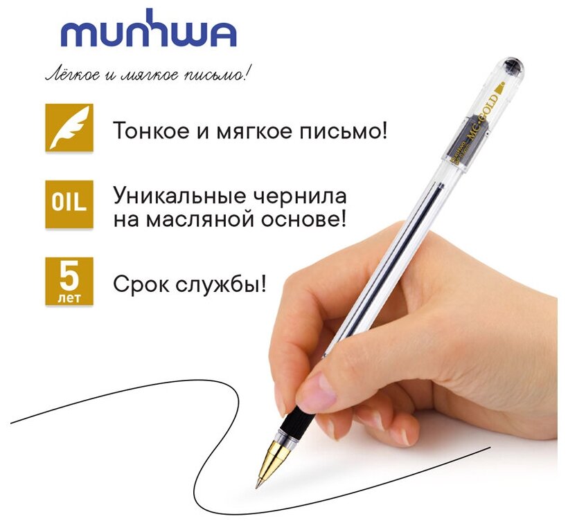 Ручка шариковая MunHwa MC Gold (0.3мм, черная, масляная основа) (BMC-01), 1шт.