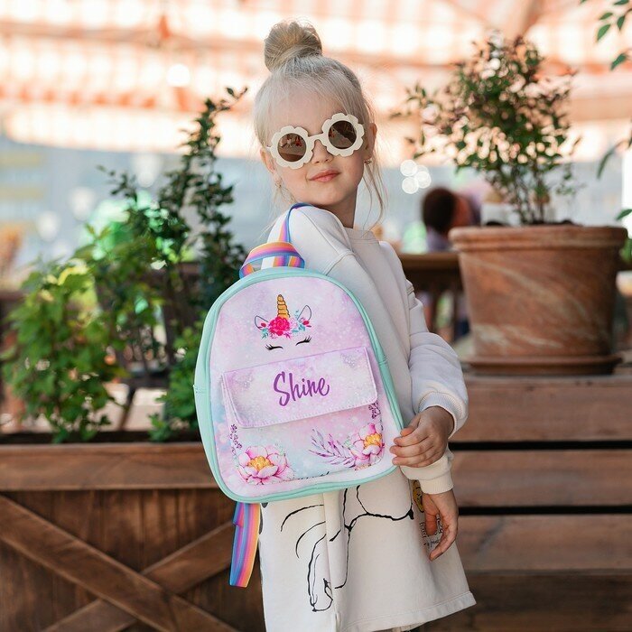 NAZAMOK KIDS Рюкзак детский для девочки текстильный «Единорог и цветы», 27х23х10 см