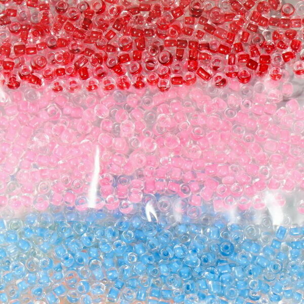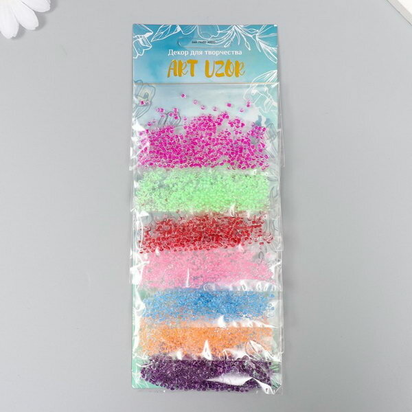 Бисер круглый размер 12/0 "Прозрачный, внутри цвет. Ассорти" 7 цветов x 5 грамм интересное: