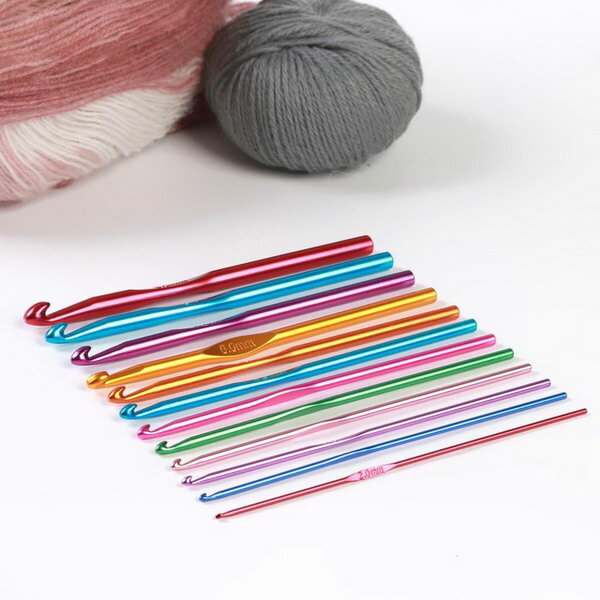 Набор крючков для вязания, d = 2-8 мм, 14,5 см, 12 шт, цвет разноцветный