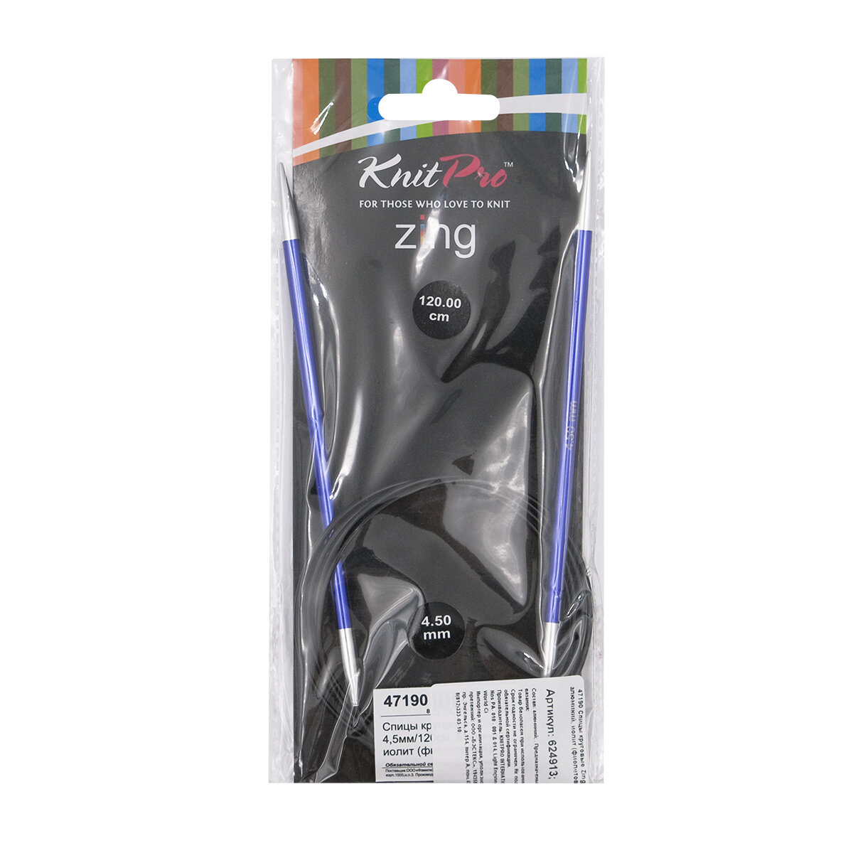 Спицы круговые KnitPro Zing длина 120 см, № 4,5