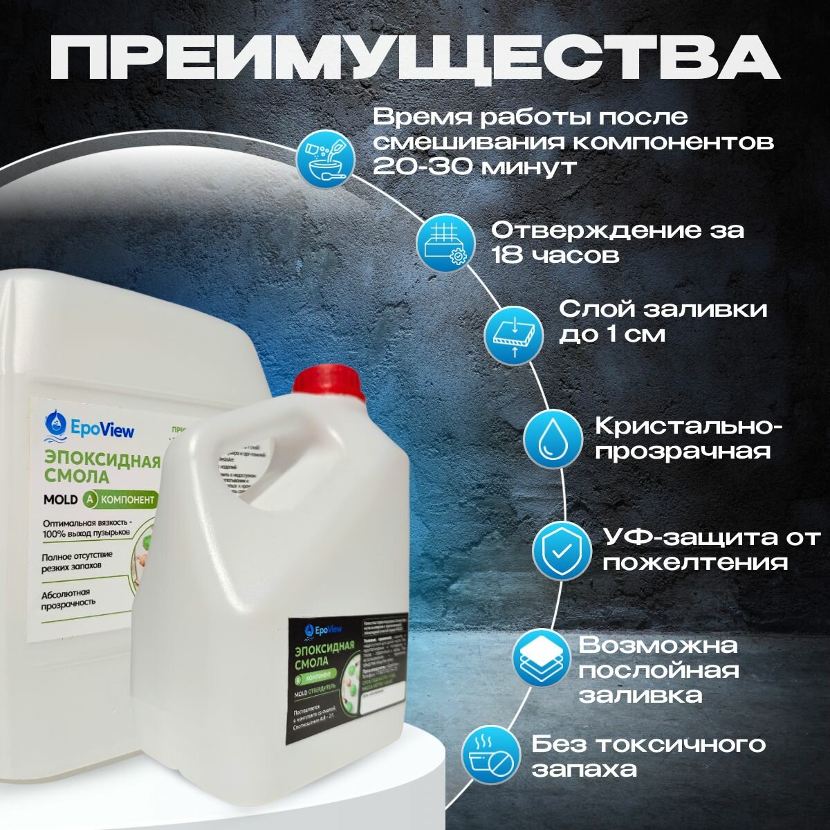 Купить Эпоксидная смола 5 кг EpoView MOLD, Ювелирная, для бижутерии и заливки в молды , средняя вязкость, универсальная
