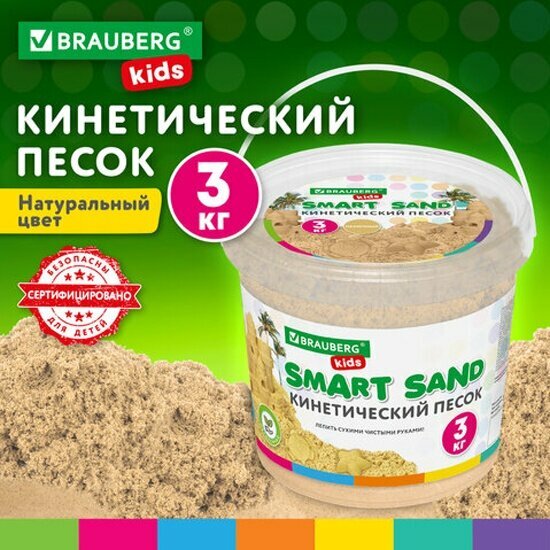 Кинетический песок для детей и малышей набор 3 кг с ведром для лепки, песочный, Brauberg Kids, 665479