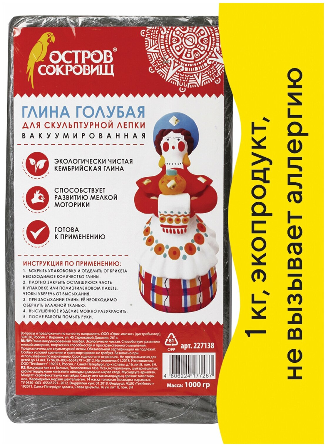 Купить Глина для лепки голубая остров сокровищ, 1 кг, вакуумированная, готовая, размачиваемая, 227138