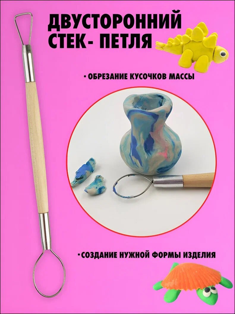 Набор стеков для лепки и моделирования AXLER художественные двухсторонние, петля, шарики из металла и деревянные лопатки