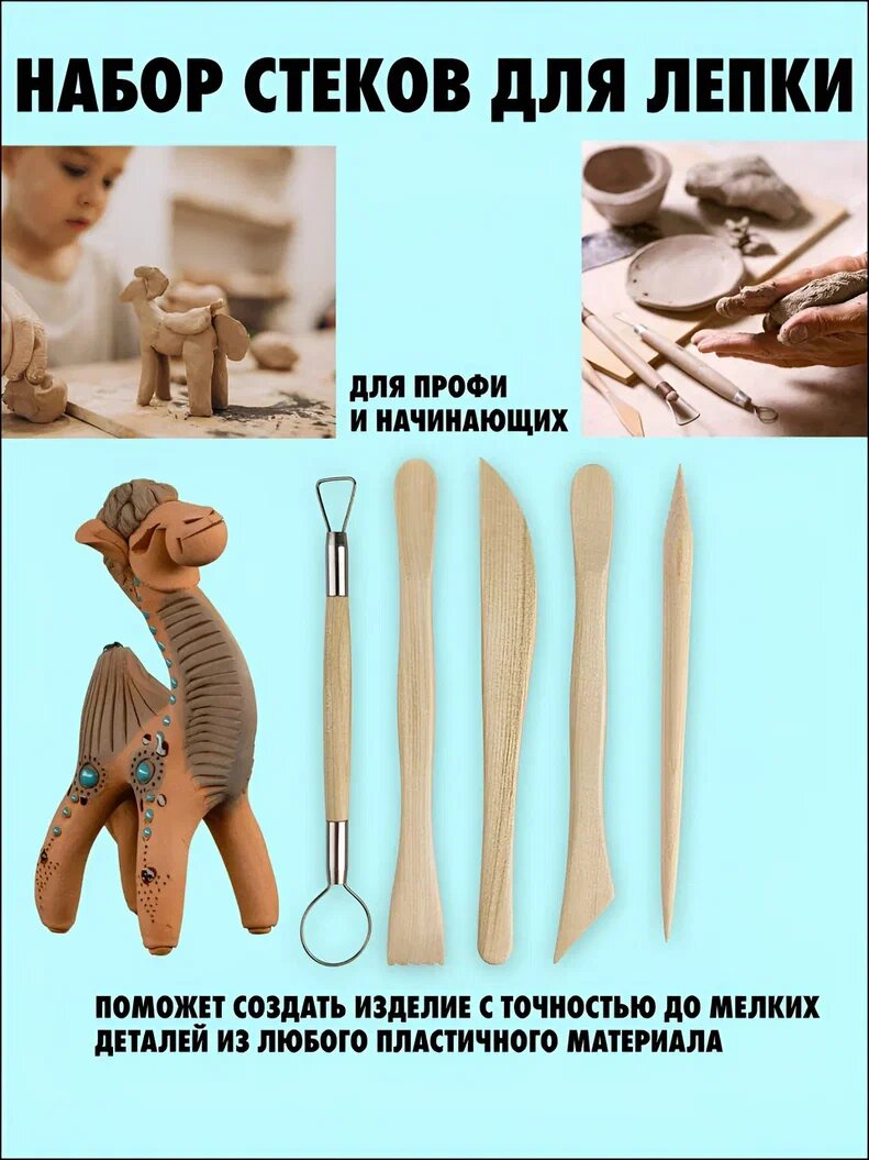 Набор стеков деревянных для лепки AXLER, двухсторонние инструменты художественные для пластики глины и пластилина интересное: